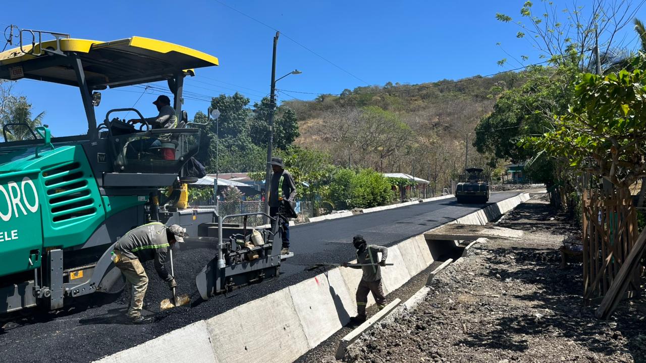 Actualmente, se ejecutan labores de construcción de cunetas, accesos peatonales y conformación de la calzada, así como el inicio de la colocación de carpeta asfáltica en los tramos ya intervenidos.